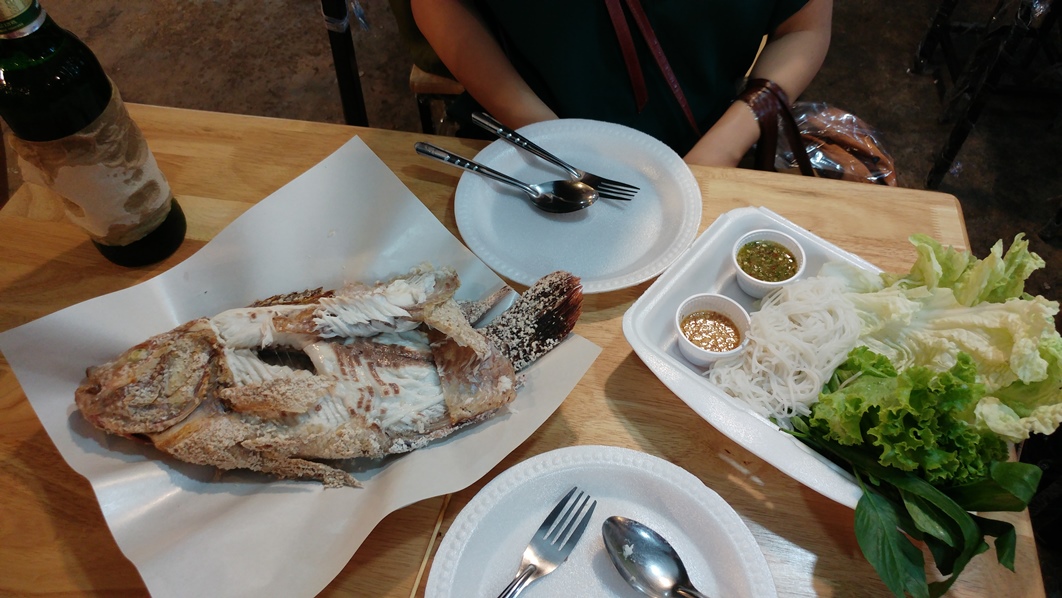 We ordered deep fried fish for starters and White Tom Yum fish soup with tang hoon. They were DA BOMB! The deep fried fish was very fresh and very crispy and was the ideal accompaniment for beer. The Tom Yum soup was served with generous ingredients and cooked with spices so fresh, I could even smell the lemongrass with every sip. We requested for clear Tom Yum soup (no milk) that was spicy just at the right level for our liking. Needless to say, we devoured every single drop.